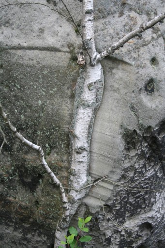 tahle bříza vyrostla moc blízko skály a tak se při pohybu větrem obrušovala nejen sama sebe, ale i skálu. Muselo to trvat několik let. Nakonec však břízka svůj souboj prohrála.