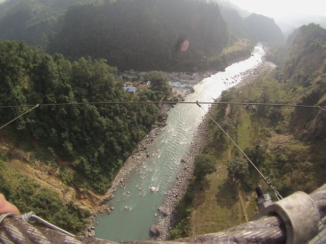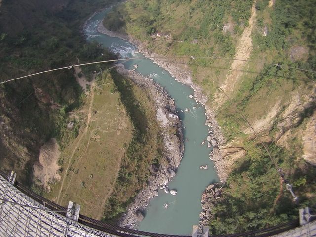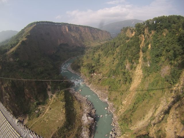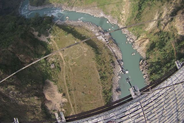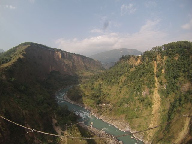 Kali Gandakifoceno z nejvyšší a nejdelší visuté lávky v Nepálu poblíž vesničky Kushma |