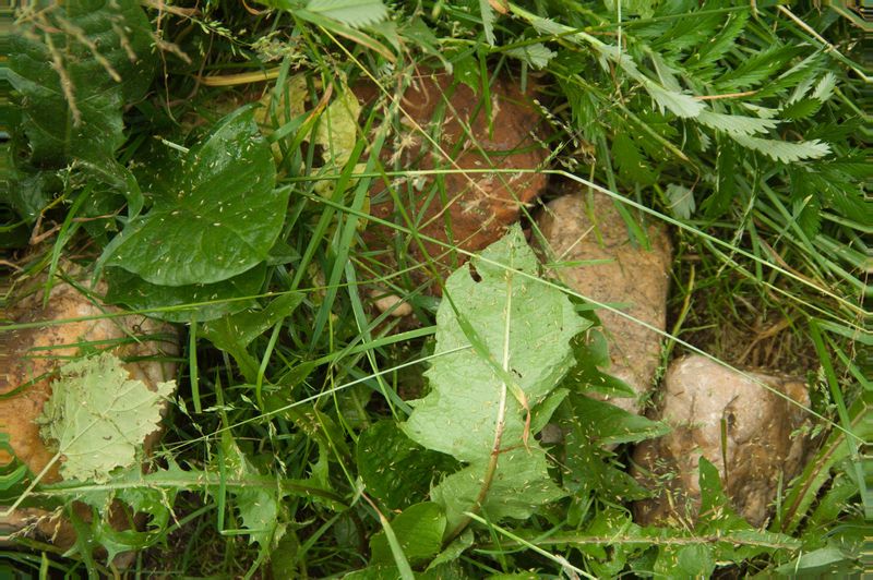 Ochrana rostlinželezné tyče doporučuji opírat o stěny z venku budov aby tak důmyslně chránily stonky oblíbených rostlin. Jde o maličkost, tyč je stále po ruce, je vidět z celého dvora a navíc chrání stonky kopřiv před kosou nebo přejetím sekačkou. Velmi praktické. |